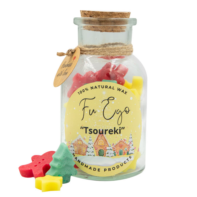 Tsoureki Christmas – 14 μερίδες αρωματισμένου κεριού ελαιοκράμβης καρύδας, σε γυάλινο μπουκαλάκι με φελλό