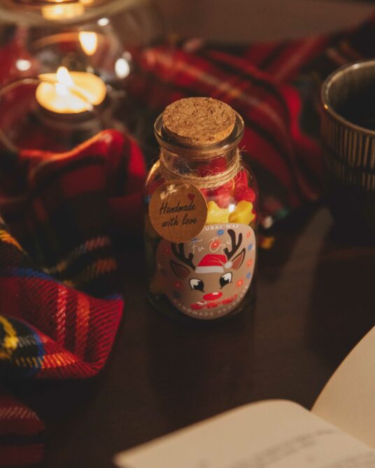Xo.. Xo.. Xo.. – 14 μερίδες αρωματισμένου κεριού ελαιοκράμβης καρύδας, σε γυάλινο μπουκαλάκι με φελλό
